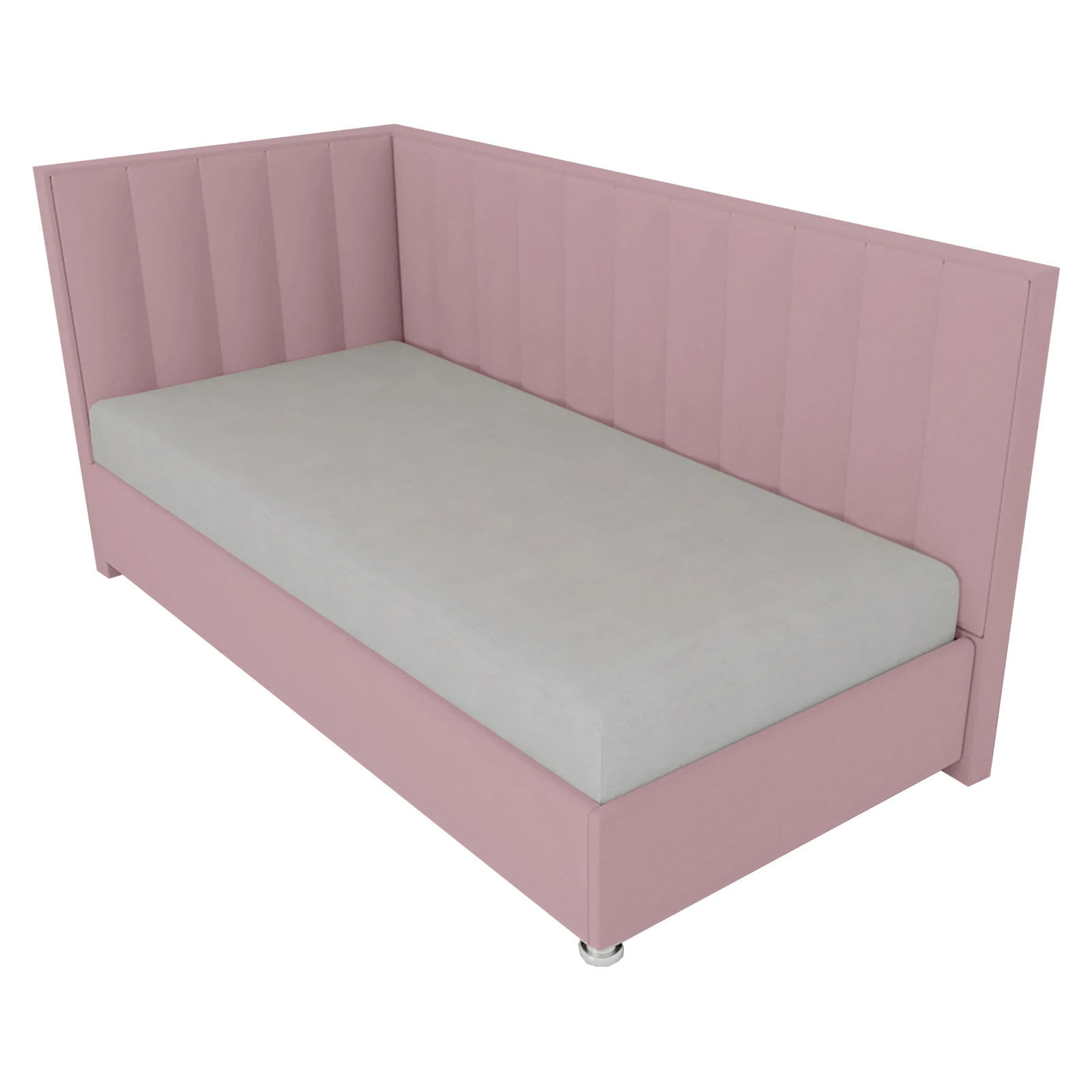 В наличии Кровать Сочи, 120×200, Металлическое с ламелями, Велюр Галакси лайт 25-светло розовый, Ножки 5 см стандарт, Угол Правый — длинное изголовье справа Чехол на царгах НЕ съемный, Задняя часть маленького изголовья в ткани.