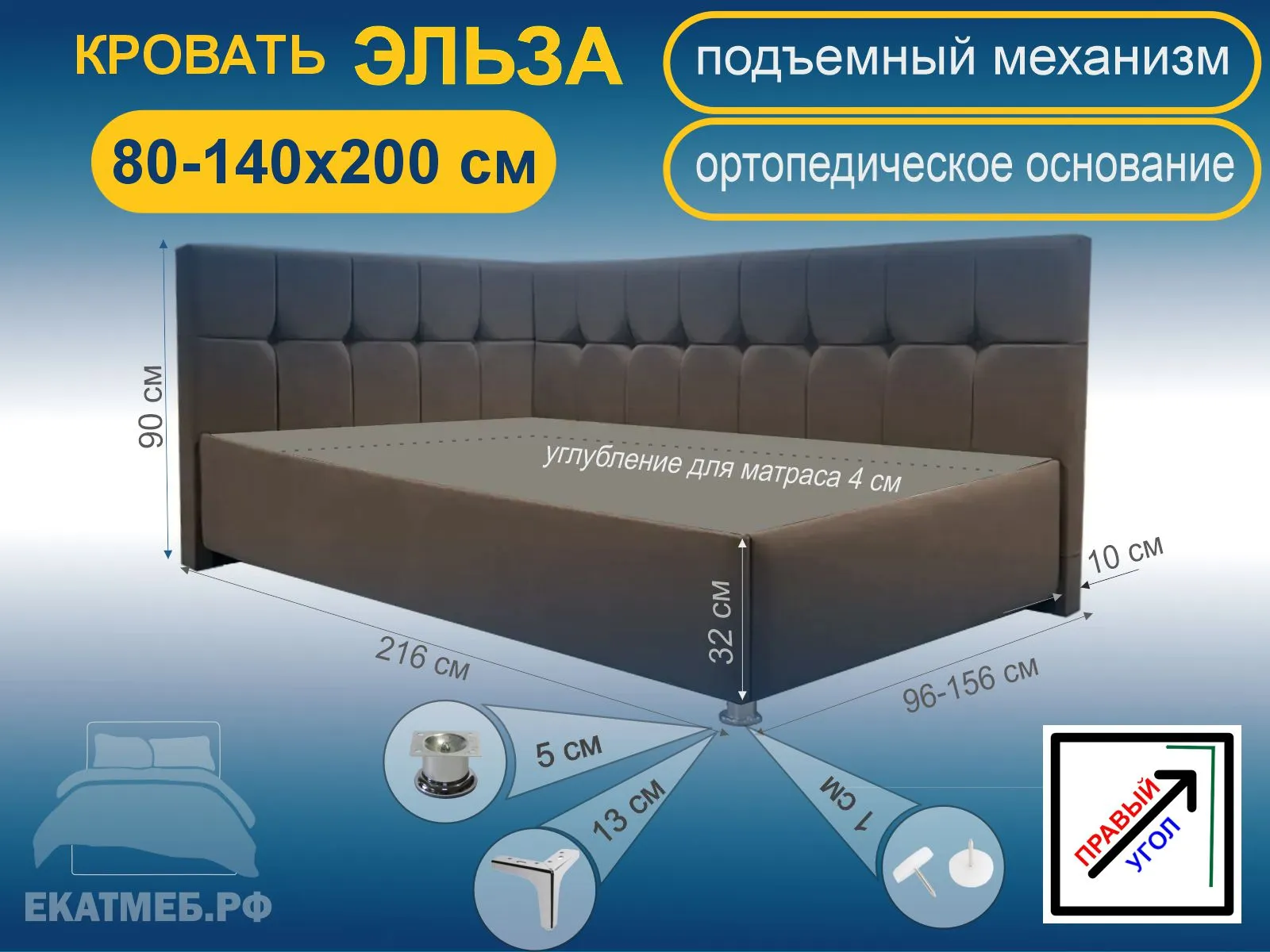 Толщина изголовья 10 см.